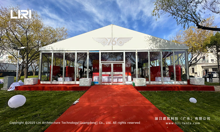The core commercial advantage lies in the integration of the tempered glass wall system. It shatters the “temporary shelter” stereotype, allowing brands to instantly establish a climate-controlled, soundproof, and panoramic VIP venue on any lawn, pier, or industrial site.