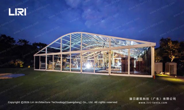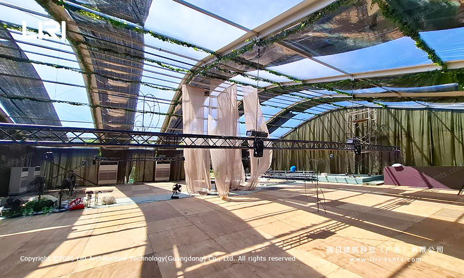 Q: How do you manage the heat inside a fully clear tent in Thailand? A: This is a critical hidden cost. Clear tents naturally trap heat. To maintain a comfortable 22°C, we recommend a high-density deployment of 5HP industrial AC units. The Arcum roof’s high interior volume actually helps here, as it allows hot air to rise well above the guests’ heads.