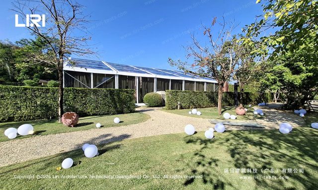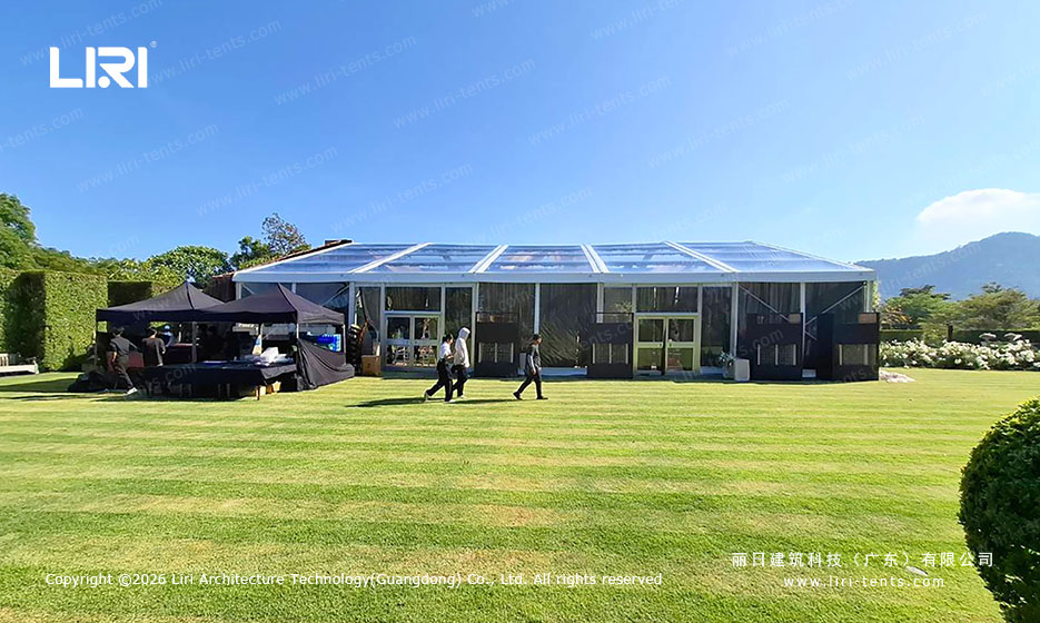 Engineered Skeleton (6061-T6 Aluminum): Liri utilizes high-strength 6061-T6 aluminum alloy. This T6 tempering ensures that the 625㎡ frame maintains the rigid stability of a permanent building, even when anchored on the relatively soft soil of a Thai resort lawn.