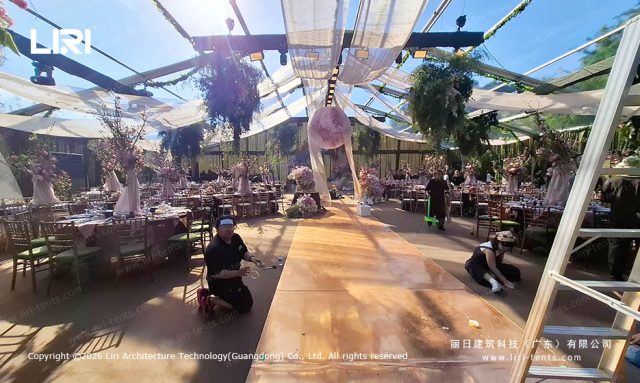 Q: What is the typical installation efficiency for a 25x25m structure? A: For a professional crew, including the flooring system, frame assembly, and PVC tensioning, the timeline is usually 48 to 72 hours. Speed is a vital B2B metric, as it minimizes venue rental costs and maximizes setup time for decorators.