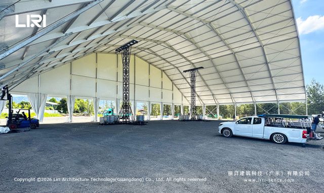 Q: Can a Large Polygon Tent handle hanging heavy production equipment? A: Yes, but with conditions. While the 6061-T6 frame is robust, point loads are the enemy. We recommend a “distributed rigging” plan. Standard purlins in our Large Polygon series are rated for 50kg–100kg per hanging point. For heavier arrays, we integrate reinforced “Heavy-Duty Purlins” that can support up to 300kg per point.