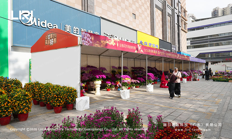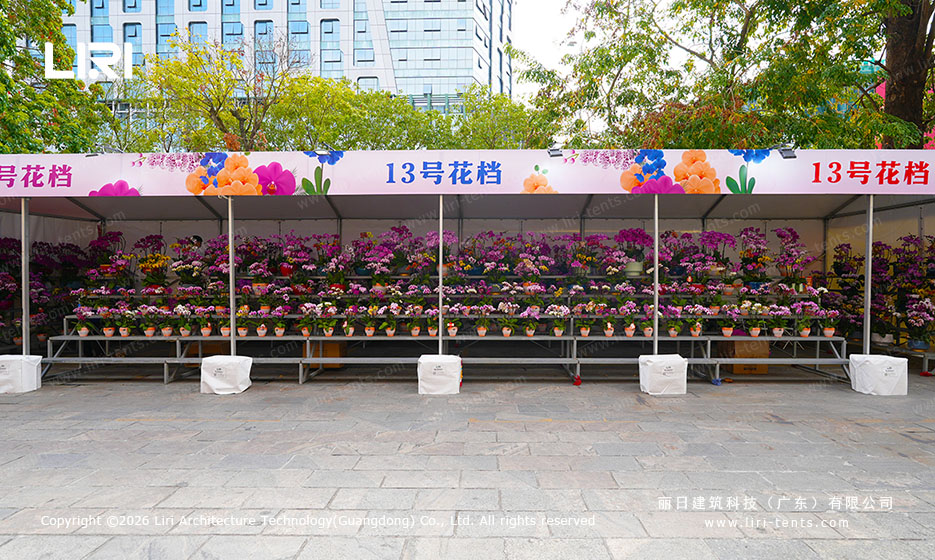 Size Freedom: Unlike fixed-size gazebos, these modular systems allow for “infinite” longitudinal extension. Whether you need a 10m run for a boutique pop-up or a 500m corridor for a city-wide flower market, the structure adapts to your site.