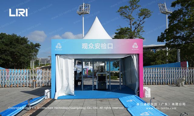 Sports Events and Logistics: In major sporting events, they are reliable Sports Event Temporary Pagoda Tents. As shown in the image, they quickly establish critical functional areas such as spectator checkpoints, security screening, media studios, and medical stations, ensuring the smooth operation of the event.